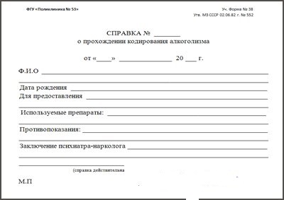 Потребовать справку о кодировании могут на работе, также ее наличие может обрадовать и близкого человека. Если вы смогли самостоятельно справиться с проблемой и твердо в себе уверены, покупка справки не принесет разочарований. При реальной необходимости лечения, однако, мы рекомендуем пройти полный курс кодирования и избавиться от угрозы своему здоровью.